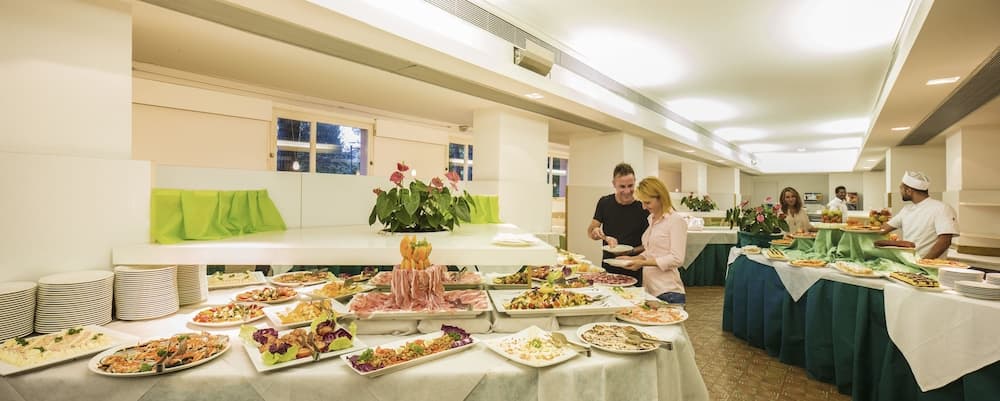Il ristorante presenta sia una sala interna climatizzata che una veranda esterna con vista parco e ad ogni camera verrà assegnato un tavolo che rimarrà lo stesso per tutta la durata del soggiorno. Il servizio di colazione, pranzo e cena sarà con buffet assistito. Le bevande verranno servite imbottigliate ( a pagamento ). A disposizione dei nostri clienti un bar in piscina ed uno in spiaggia.